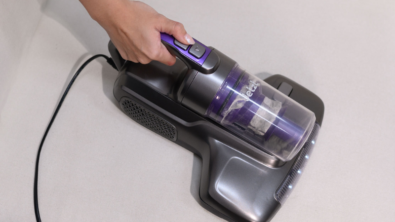 - Hộp chứa bụi tháo lắp dễ dàng, không cần tháo lắp, đổi đầu hút nệm hay di chuyển ra nhiều khu vực khác nhau.