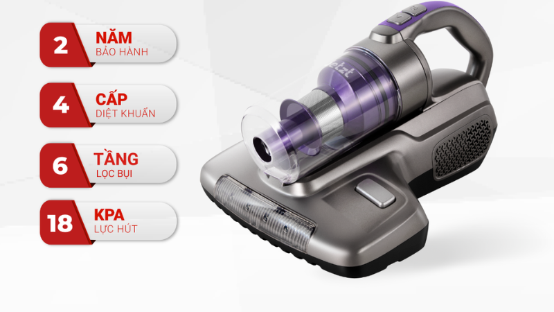 - Khả năng diệt khuẩn vượt trội, hút được bụi mịn sạch sẽ.