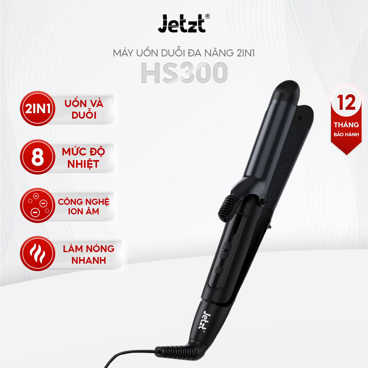 Máy uốn duỗi và tạo kiểu Jetzt HS300, đa chức năng, công nghệ ion âm, giảm hư tổn tóc